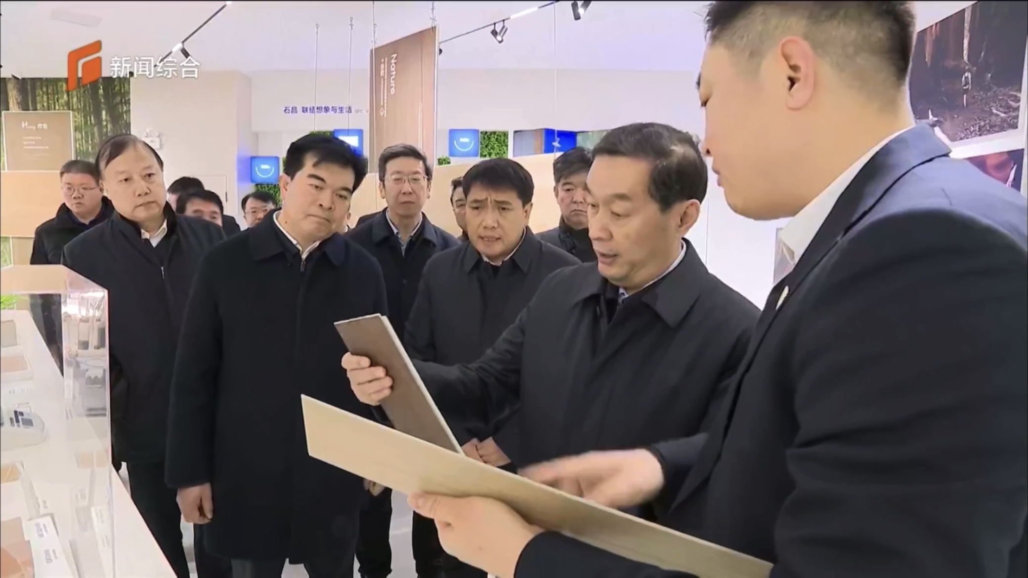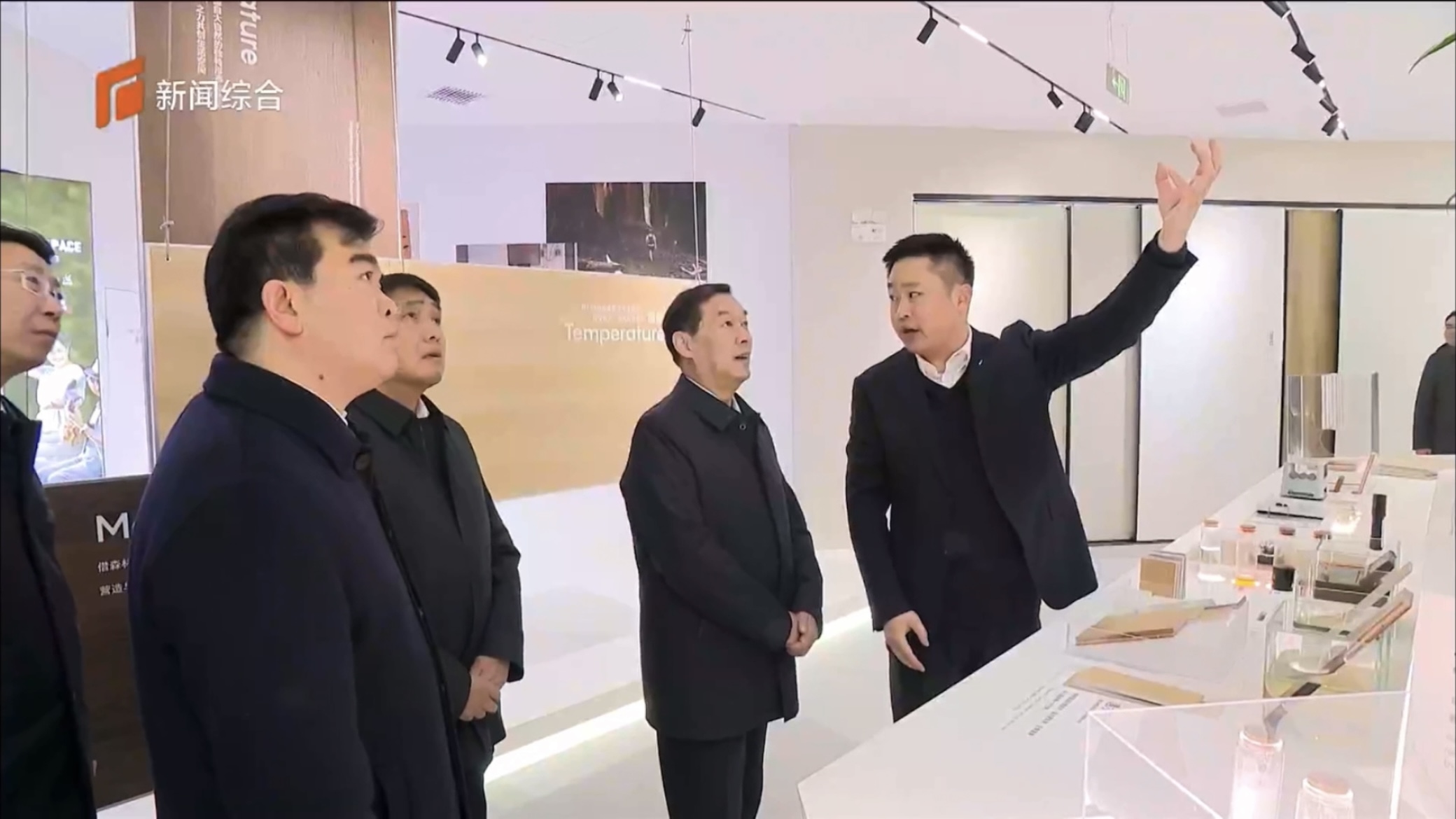 在产品展厅内,张超超书记详细了解了德科诺的发展历程和全球业务布局,对集团多年来的发展成果表示充分肯定。此外,张超超书记与集团董事长王继旭就石晶板材的环保特性以及市场反馈展开沟通,对石晶产品在二装旧改市场以及全球市场的前景给予高度认可。