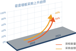不仅如此,北美市场是全球主要的吸音墙板消费市场之一,且需求一直在稳步增长。据德卡诺客服部统计,自2023年起,北美客户对集团吸音墙板的采购量就呈逐步上升趋势,2024年更是大幅提升。因此,本次展会德卡诺特意携带了新品吸音墙板,其丰富的形状和花色,将为北美客户带来更多样化的选择,进一步满足当地市场对于个性化的追求。