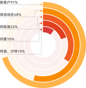 德卡诺战队肩负集团使命与目标踏上这片商业热土。从抵达迪拜那一刻起,便以昂扬姿态全身心投入其中。在德卡诺精心布置的展位上,有序陈列经由当地市场反馈筛选而出的热门产品以及集团最新推出产品,吸引了众多专业买家与行业人士纷至沓来。据德卡诺客服部统计,本届Big5展前来咨询产品的新客户占比高达97%,共接待来自45个国家及地区的新客户,其中阿联酋客户高达32%,其次是印度,占比10%,阿曼、沙特分别占比5%,其他国家及地区合计占比48%。