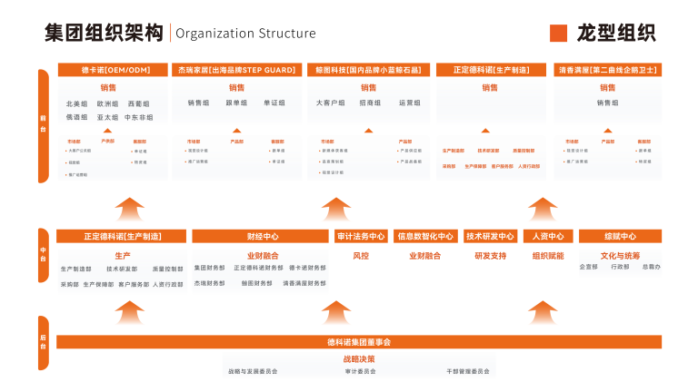 德科诺始终围绕“为了全球亿万家庭的幸福美好生活,让中国品牌影响世界”的使命,在家居建材产业持续深耕,打造新型建材(第一曲线)和家居清洁(第二曲线)两大核心业务。持续夯实以“人才为本”为核心理念的组织力、以“打造品类”为核心路径的品牌力、以“链接心智”为核心成果的渠道力,并大力培养以“技术驱动,产业优先”为核心路径的产品力、以“数智化能力”为核心内容的运营力,五力并举,为企业战略的实现提供强大驱动力。全体德科诺人,为早日实现百亿德科诺的企业目标而不懈奋斗。