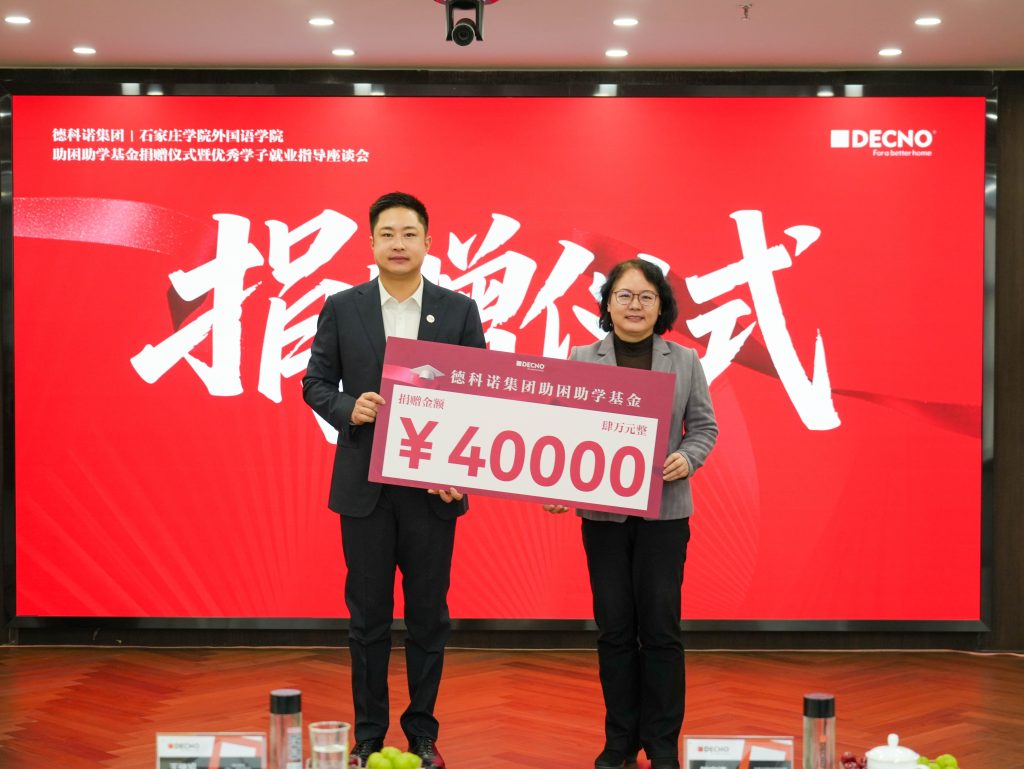 第二期助困助学基金捐赠仪式落地德科诺集团,我们邀请到石家庄学院师生代表,通过深度参访,切身感受德科诺的工作环境、发展历程与企业文化;并开展了优秀学子就业指导座谈会,以可持续的公益形式,为青年学子提供多维度的支持与成长助力。